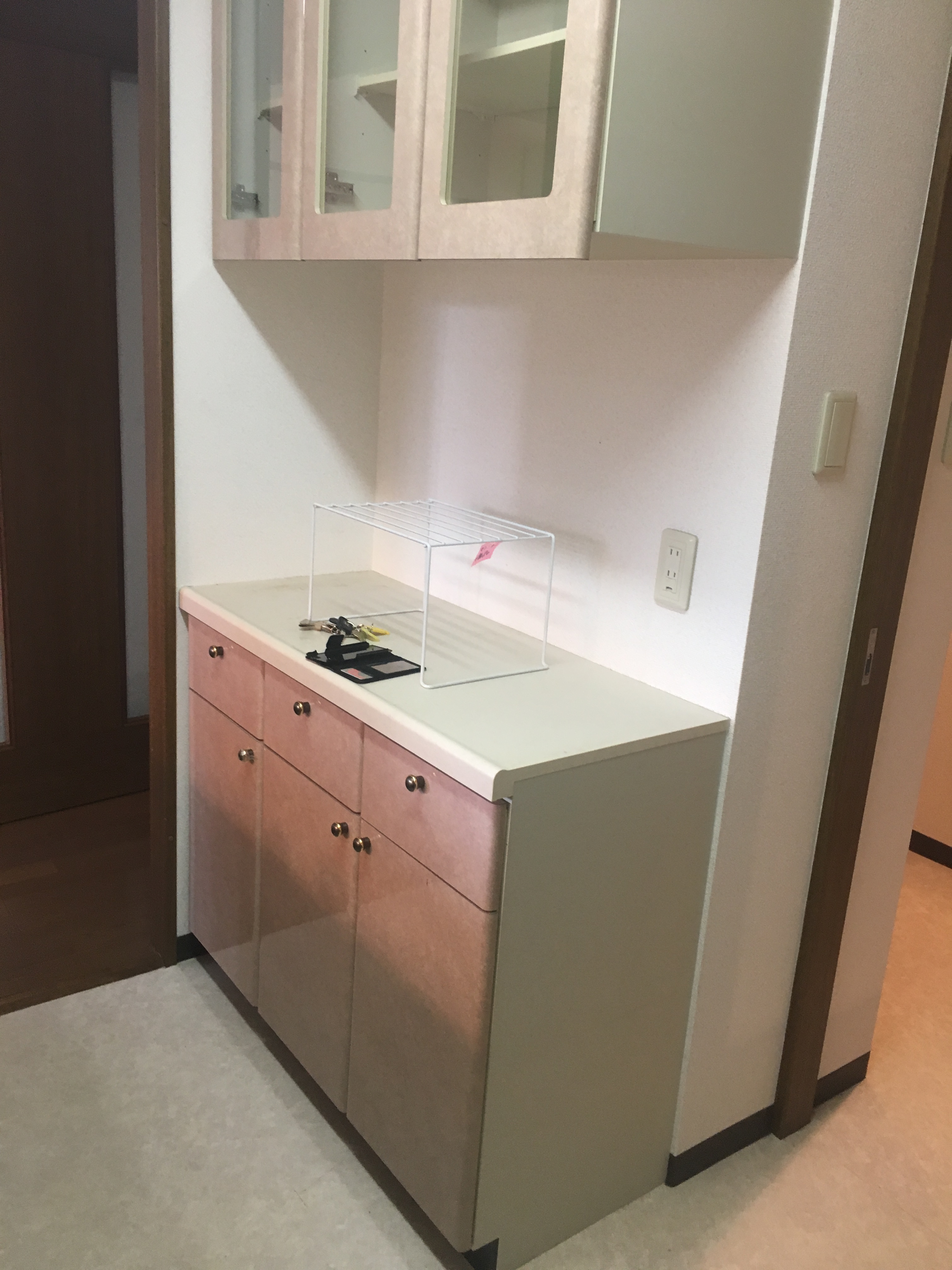 - ウォルナットの美しさが引き立つキッチン・食器棚