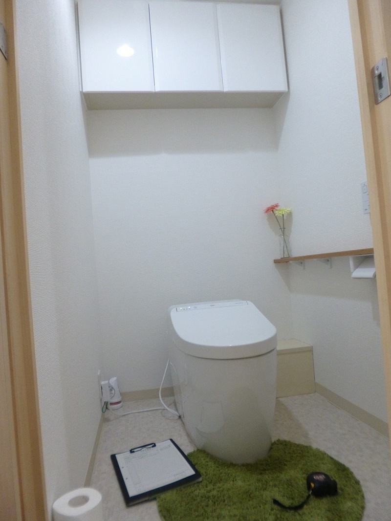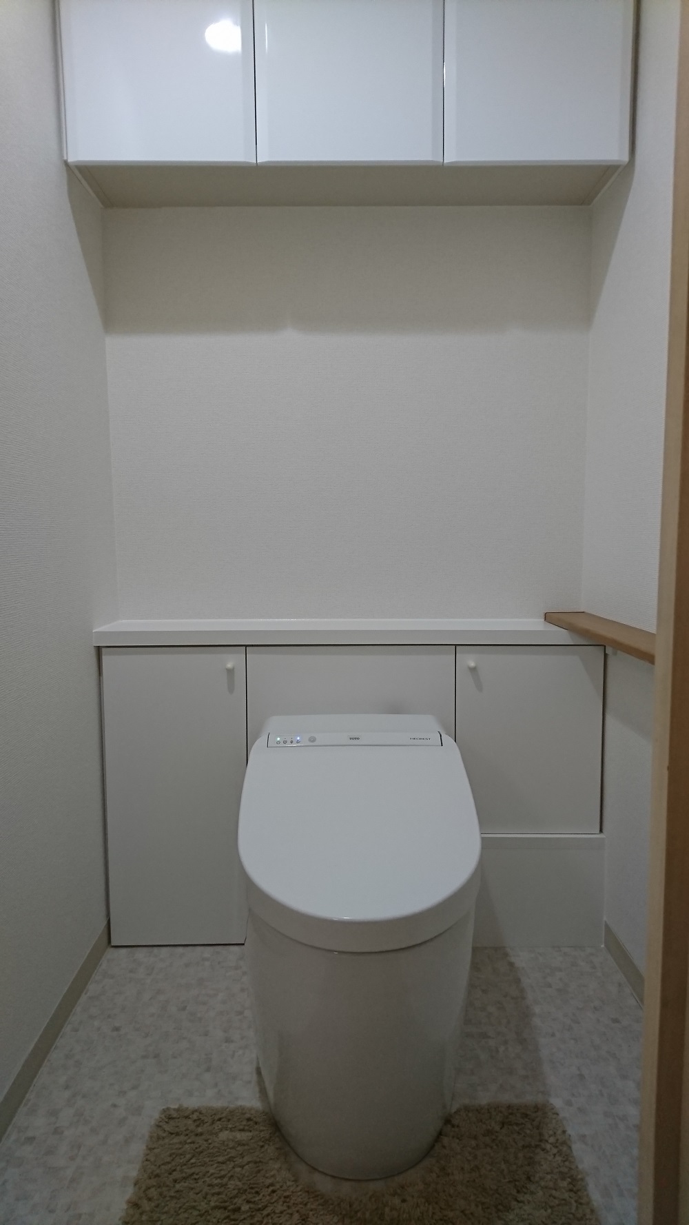 便器交換をしない状態で、背面にキャビネットを造作しました。