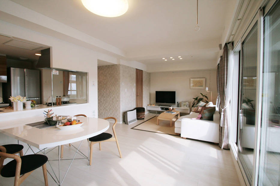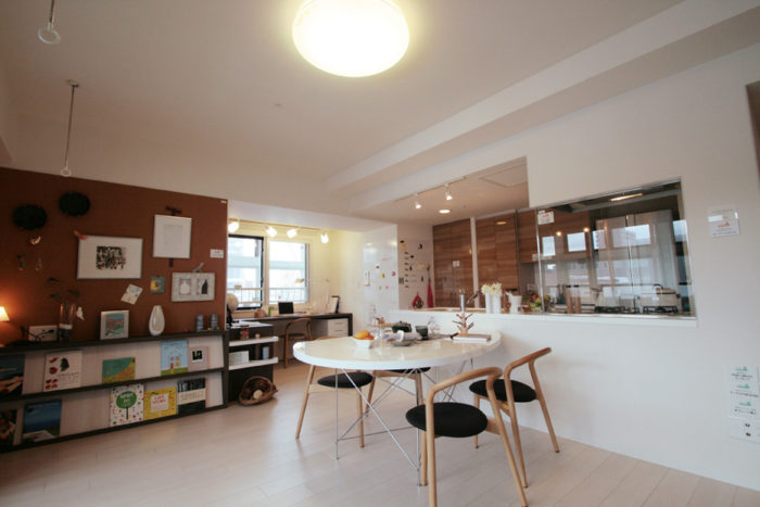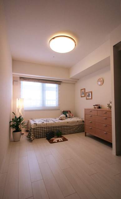 『子育て応援マンション』の工夫を随所に盛り込んだモデルルーム。楽しく快適に暮らせるアイディアをいろいろ実現するためカラースキームは、ベース となるフローリング・壁紙・建具は明るく自然になじむナチュラルカラーとし、住み 手の個性を最大限に生かせるカラーコーディネートを提案していま