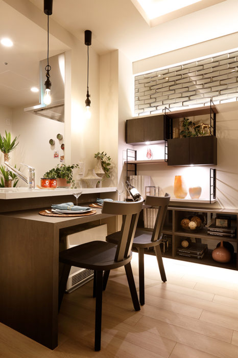 空間を効率良く見栄え良くする為に、 ダイニングはキッチン対面のカウンタータイプ。