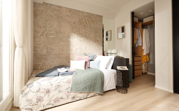 寝室のウォークインクローゼットは、女性向けにたっぷり収納出来るように システム収納へ。