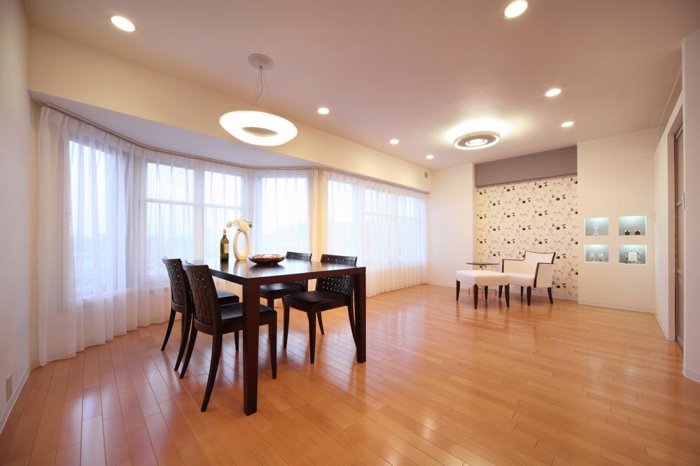 間取りを3LDKから2LDK+パウダールームに変更し、和室をリビングダイニングにすることで、壁一面が窓となり、パノラマな風景が広がります。