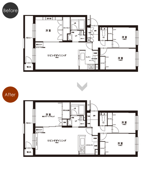 基本は2LDKとしてお使いいただき、家族が増えたり来客時には3LDKとしてお使いいただけます。第二の人生を歩む御夫婦、共働きの御夫婦、子育て世代にも快適にお使いいただけます。