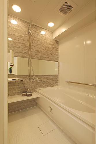 1216サイズのバスルームから向きを変えて1416にサイズアップしたバスルーム。