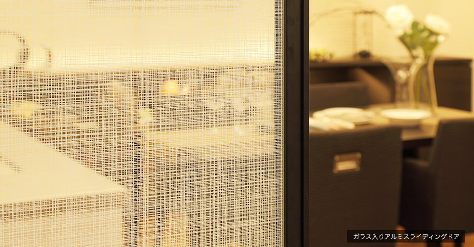 書斎として使用する洋室2との間仕切りにはファブリックガラス風のシースルーの引き戸を採用。