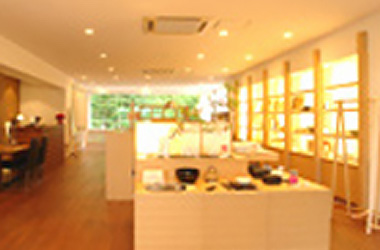 調湿デザインタイルや無公害塗料「オスモカラー」などの自然素材やLED照明で作られた柔らかい、優しい空気を感じる事のできるショールームです。